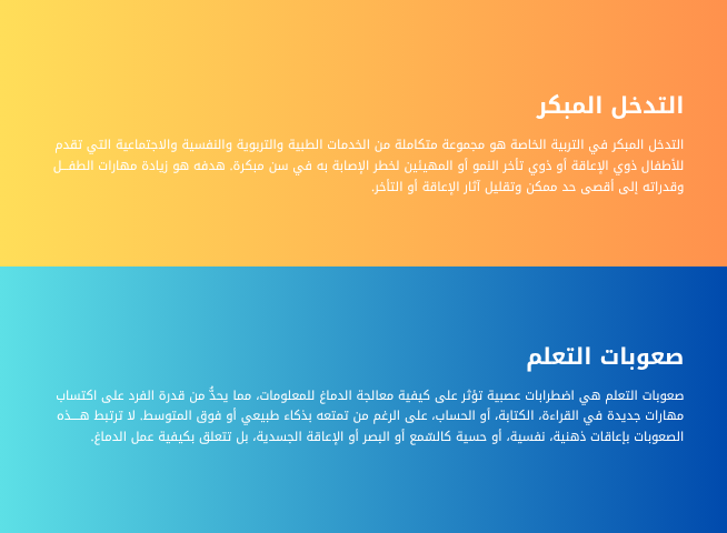 We specialize in special education and rehabilitation, and we are honored to serve your children with disabilities and their families. We are committed to maintaining the highest standards of quality in delivering the services needed by individuals with disabilities, in accordance with international standards.
